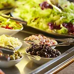 饭店每天早晨供应好吃营养的本土早餐. Taverne Pontos烤肉店提供地中海美食.